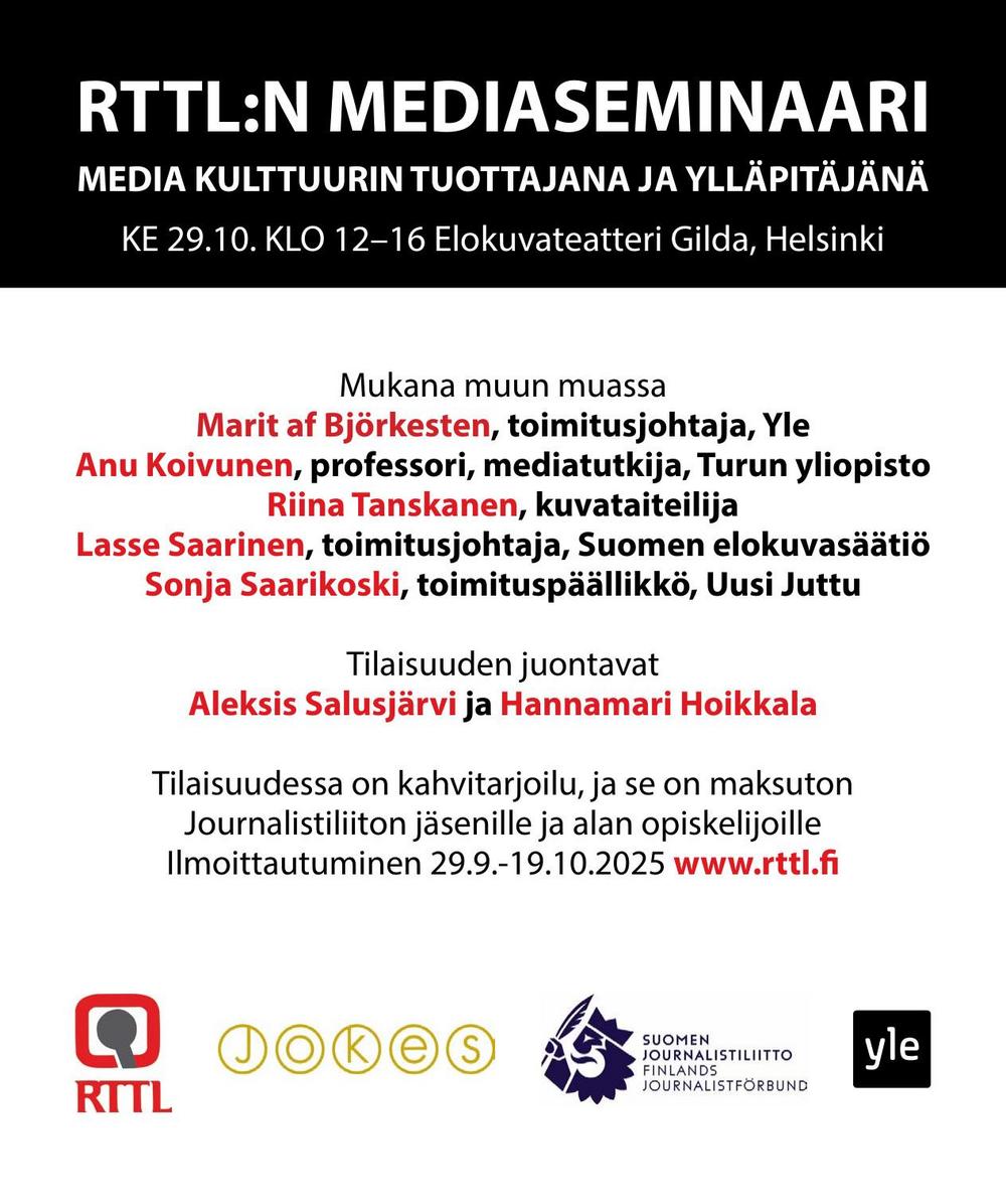 Maanantaina 28.4. kello 17–18 Journalistiliitolla ja etänä Teamsissa