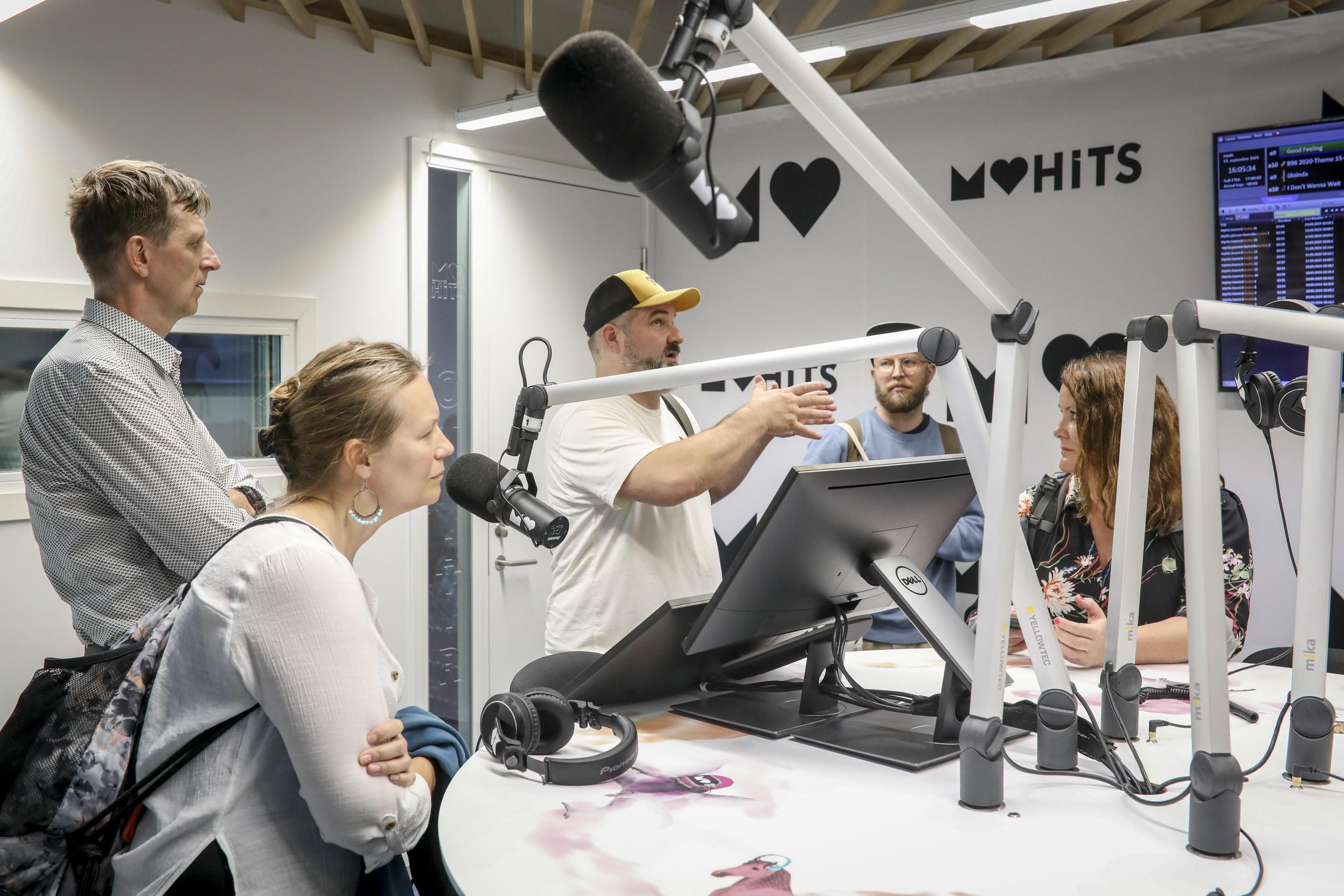 Duo Media kierrätti NOTin porukkaa radiostudioissaan. Kuvassa Radio Rockin Marcelino Rendic kertoo, kuinka hommat Suomessa rokkaavat.